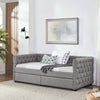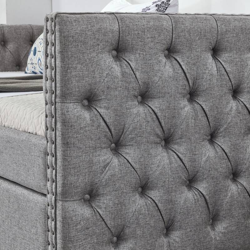 - Introducing our elegant twin-size upholstered daybed, designed to elevate your bedroom with its stunning mid-century charm. Featuring a stylish button-tufted armrest and chic nailhead trim, this sophisticated piece easily complements both modern and traditional decor.