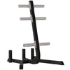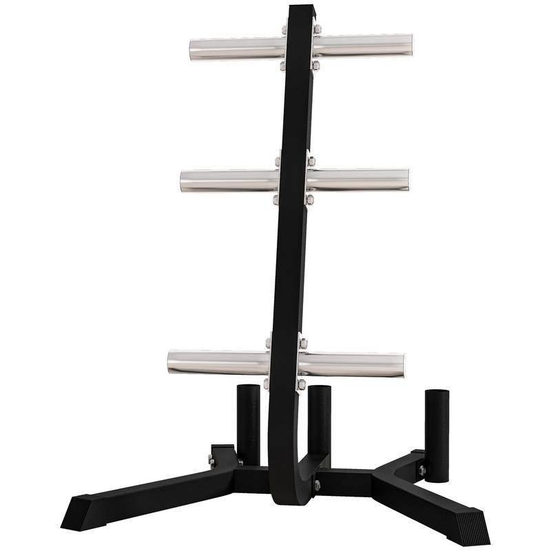 - Maximize your workout space with our sleek black weight tree rack, designed for efficiency and organization. Made from sturdy steel, this compact storage solution supports a total weight of 660 lbs and features six posts for weight plates as well as space for three barbells. Its design accommodates standard weight plates with a 2-inch diameter, ensuring versatility for all your lifting needs. Plus, non-slip foot covers keep everything stable while you lift. Measuring 29.5" x 29.5" x 39.4", it's the ideal addition to any home gym. Note: some assembly required. Get ready to work out smarter!
