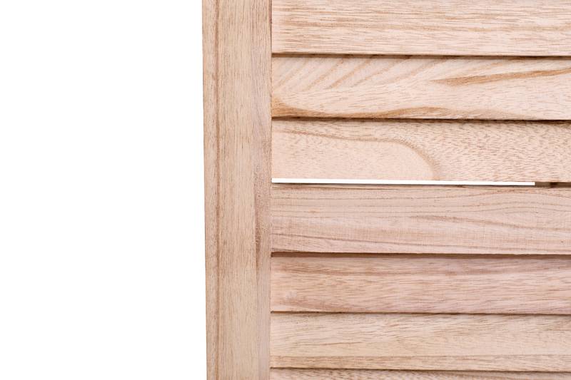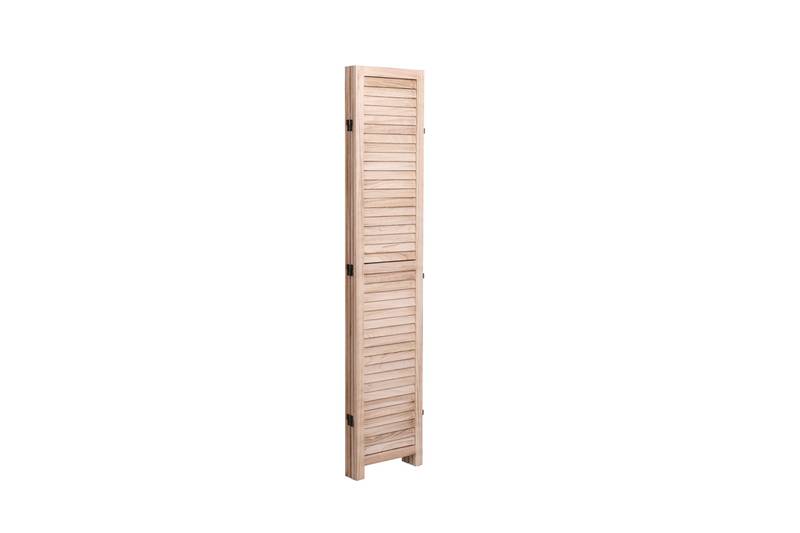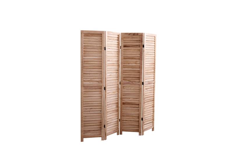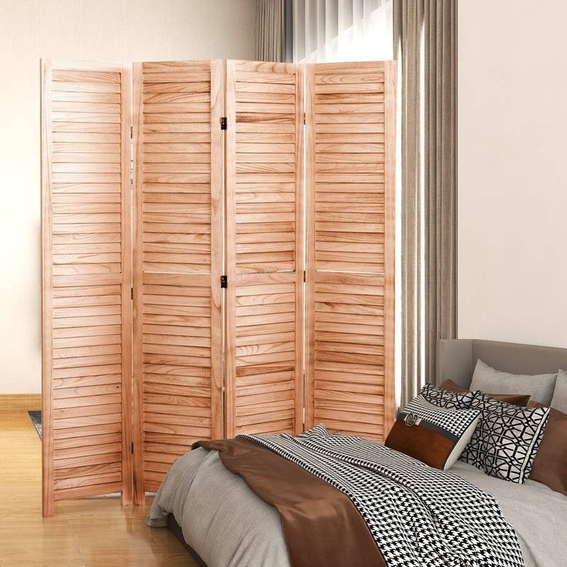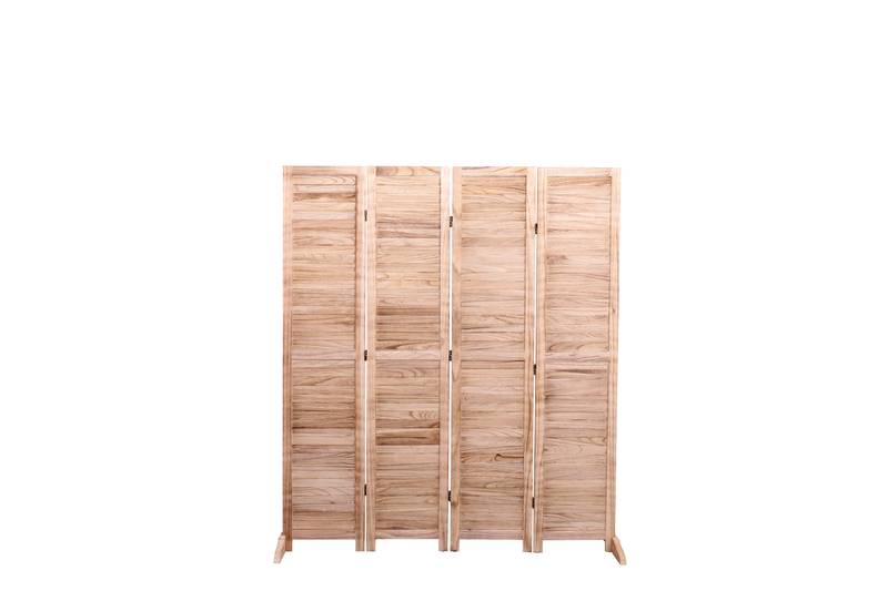 - Elevate your space with our elegant four-panel room divider crafted from solid wood with a natural finish. Its sleek design features metal hinges for effortless folding, making it a practical addition to any room. Measuring 55.2 inches wide and 65 inches tall when assembled, this divider not only provides privacy but also adds a striking touch to your decor. Perfect for both small and large spaces, it seamlessly blends style with functionality.