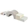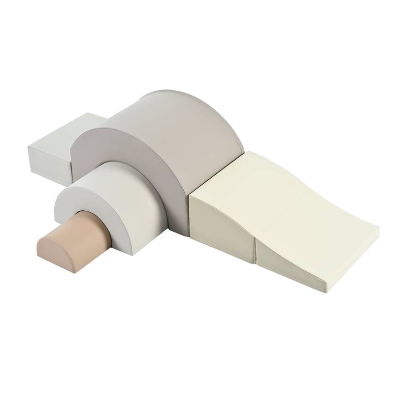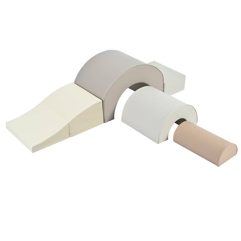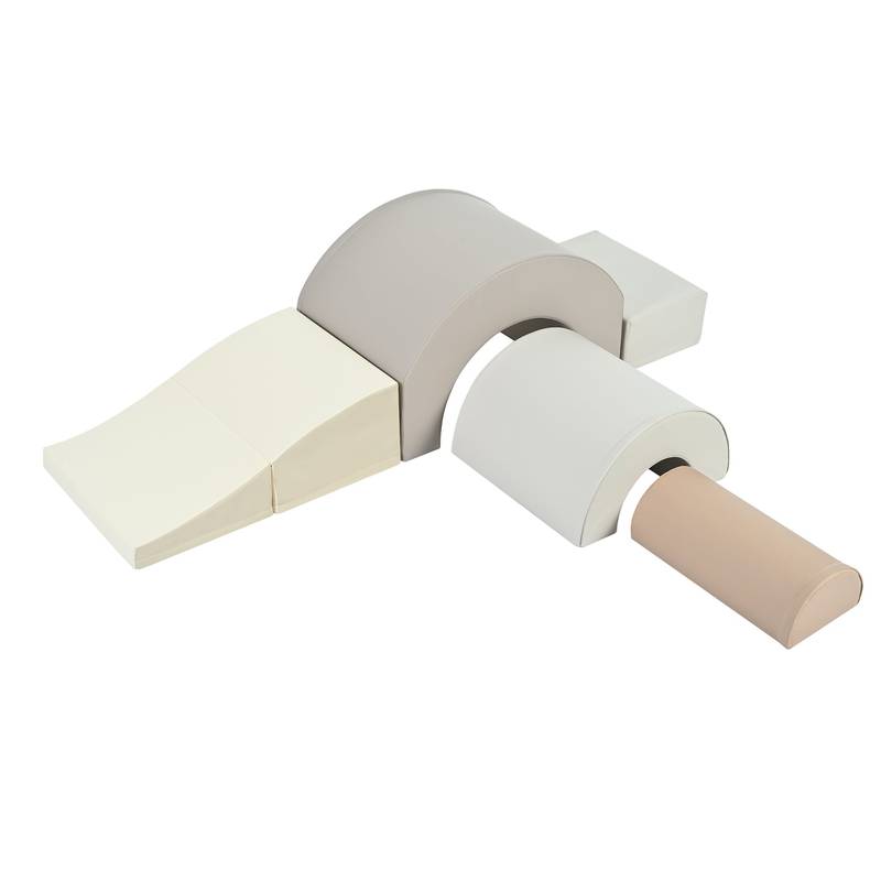 - The lollipop-shaped design, complete with vibrant colors, captures children’s attention and sparks their creativity while promoting physical development and motor skills. This versatile set includes a foldable cube, half cylinder, two arches, a climbing ramp, and a rectangular module, allowing kids to rearrange and create their own play environment.