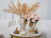 - Elevate your decor with this stunning white ceramic ginger jar featuring a chic gold design. Measuring 8.5 inches across and standing 17.5 inches tall, this versatile piece can serve as a beautiful centerpiece, a stylish shelf accent, or a captivating vase for fresh or artificial flowers. Its removable lid adds practicality, while the modern craftsmanship ensures it complements any living space. Easy to maintain, simply wipe clean with a damp cloth. Transform your home with this elegant addition!