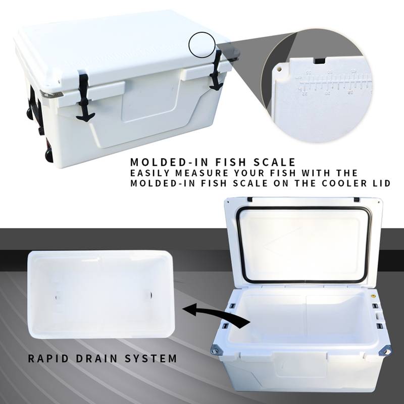 - Introducing the EchoSmile Rotomolded Cooler, your ultimate companion for keeping beverages icy cold for up to 5 days. With a robust design made from eco-friendly LLDPE material and an advanced polyurethane insulation layer, this 65-quart cooler combines durability with excellent thermal performance.