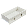 | Metal Slides And Round Knobs | Drawers slide easily with metal round drawer pulls in an antique brass tone, completing the vintage French country style. |