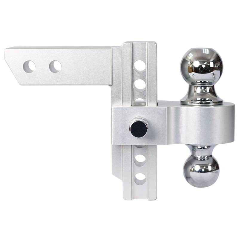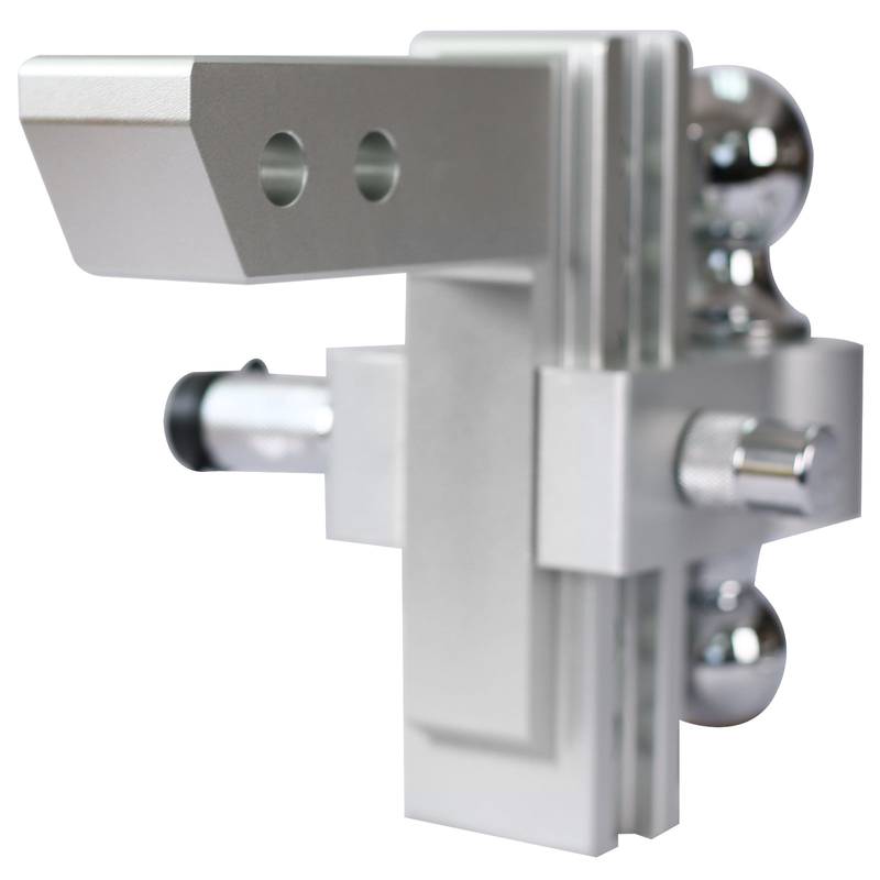 - Introducing the ultimate adjustable trailer hitch ball mount designed for convenience and heavy-duty performance. Finished in sleek silver aluminum, this robust hitch fits standard 2-inch receivers and accommodates both 2-inch (up to 10,000 lbs) and 2-5/16-inch balls.
