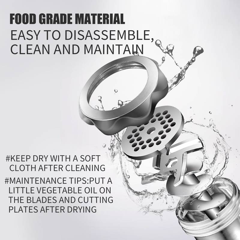 - Introducing our Aqua Grey Electric Meat Grinder, the perfect kitchen companion for sausage lovers! Crafted from durable stainless steel, this powerful grinder processes 2-3 pounds of meat per minute, making meal prep a breeze.