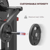 - Designed for users of all sizes, it features adjustable heights with six elbow and five seat options for personalized comfort—perfect for maintaining focus on your workout. With a maximum load of 132 lbs, you can easily add standard or Olympic weight plates as you progress.