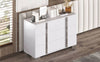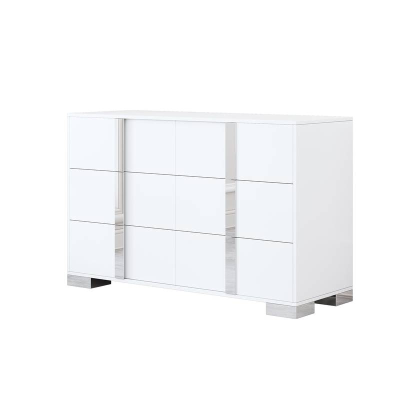 - The sleek white finish fits effortlessly into any décor, while the mirrored handles and legs add a touch of elegance. With generous dimensions of 47.2" x 17.7" x 30.3”, this dresser maximizes storage without overwhelming your space, ideal for stowing away clothes and essentials.