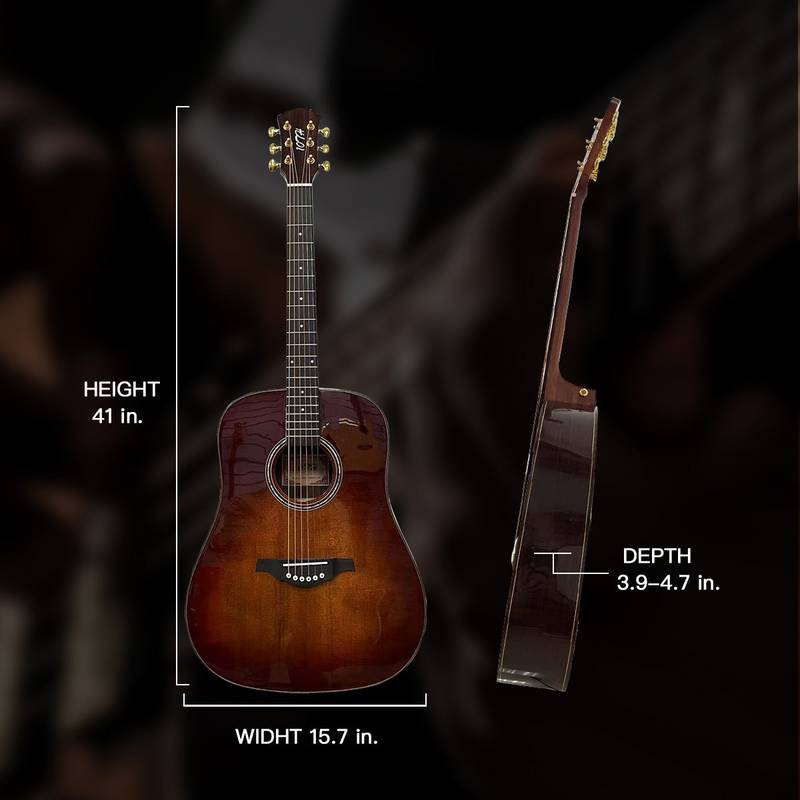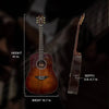 - Specifications include a 650mm string length and a barrel thickness of 3.9-4.7 inches. This guitar comes with a handy guitar hex wrench and is compatible with the GuitarTuna app for easy tuning. Experience the blend of durability, performance, and evolving sound with this stunning instrument.