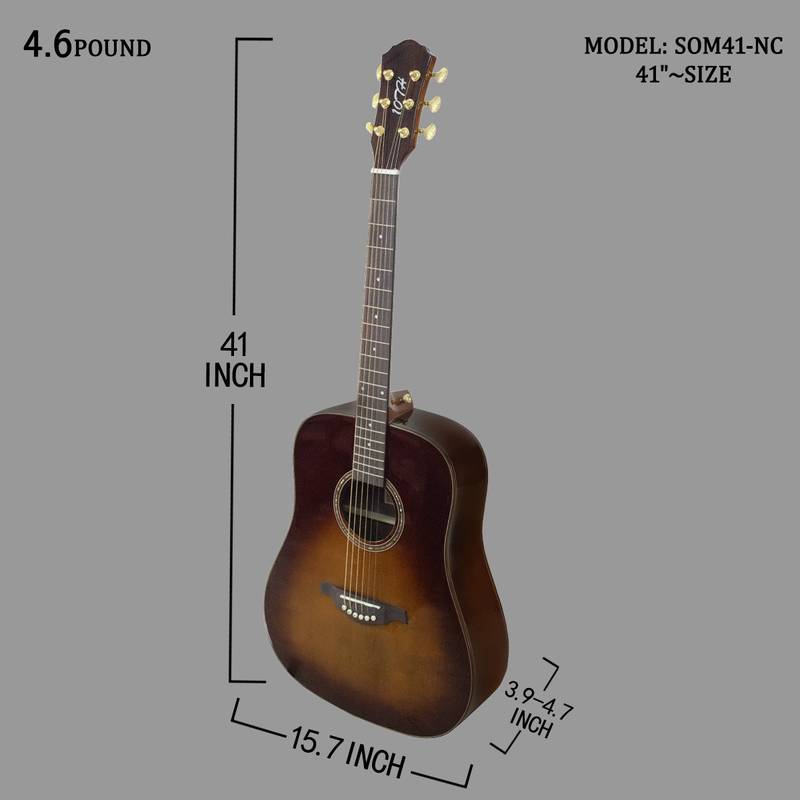 - Introducing the 41” OM Barrel guitar, crafted with precision using high-quality materials for an exceptional sound experience. With a vintage wood finish, this guitar features a spruce veneer panel and a robust rosewood bottom, ensuring clarity and a balanced resonance across all frequencies.