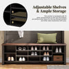 - This versatile 4-in-1 piece features a built-in bench, hooks, and storage for umbrellas and shoes, with 16 open compartments and six adjustable shelves to accommodate items of all sizes. Sturdy construction from MDF and particle board ensures durability, while solid wood feet and anti-tipping devices provide added safety and stability.