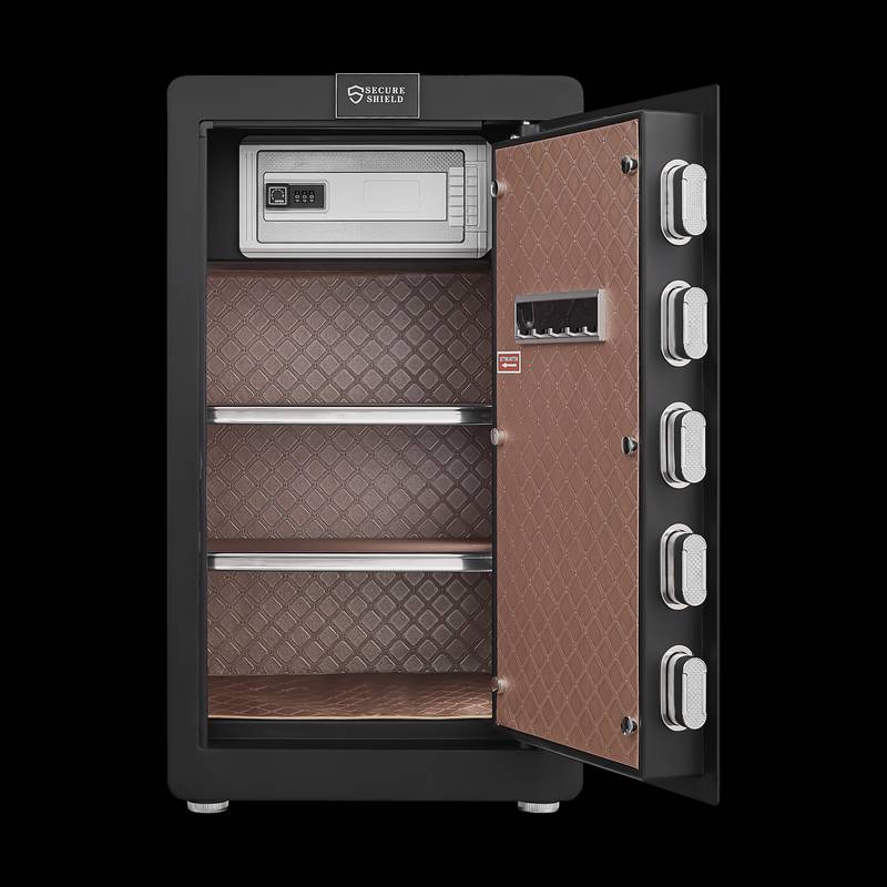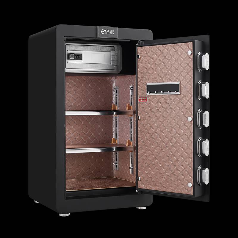- Introducing our sleek and secure home safe, designed to protect your valuables while blending seamlessly into your modern office space. Crafted from solid steel, this safe boasts three live lock bolts and pry-resistant hinges for top-notch security.