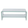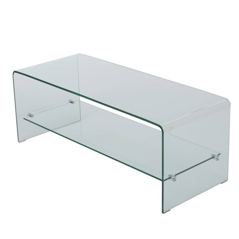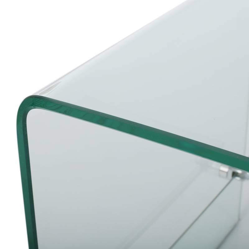 - Upgrade your living space with this stylish tempered glass TV stand, designed for TVs up to 39 inches. Its sleek, clear glass construction not only adds a touch of elegance to your decor but also complements existing glass furniture seamlessly. The open back ensures excellent ventilation for your electronics, minimizing overheating risks. Featuring a sturdy built-in shelf, it provides ample space for your cable box or gaming system. Safety is a priority, as this stand is engineered to shatter into small pieces, reducing injury risks in case of damage. Elevate your entertainment area with this modern, functional addition.