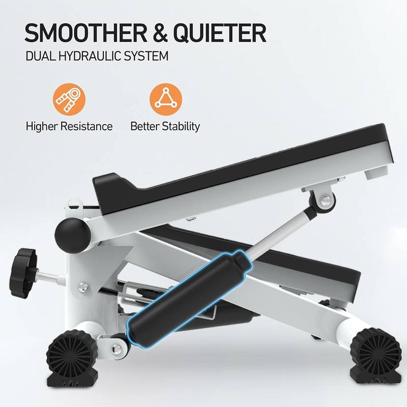 - Built for stability, the stepper supports up to 300lbs and boasts a dual hydraulic drive system for a secure exercise experience. The adjustable height allows for personalized workouts, while the anti-slip pedals ensure safety during your routine.