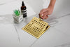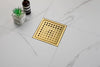 - Upgrade your drainage with our stylish gold square drain cover, crafted from durable stainless steel. Measuring 6 x 6 inches and weighing just 1.80 lbs, it’s designed for optimal water flow with its grid pattern. The corrosion-resistant surface keeps it looking new while ensuring longevity. Plus, it’s easy to uninstall for hassle-free maintenance. Perfect for use in bathrooms, kitchens, pools, and more, it adds a touch of elegance to any space while effectively managing drainage.