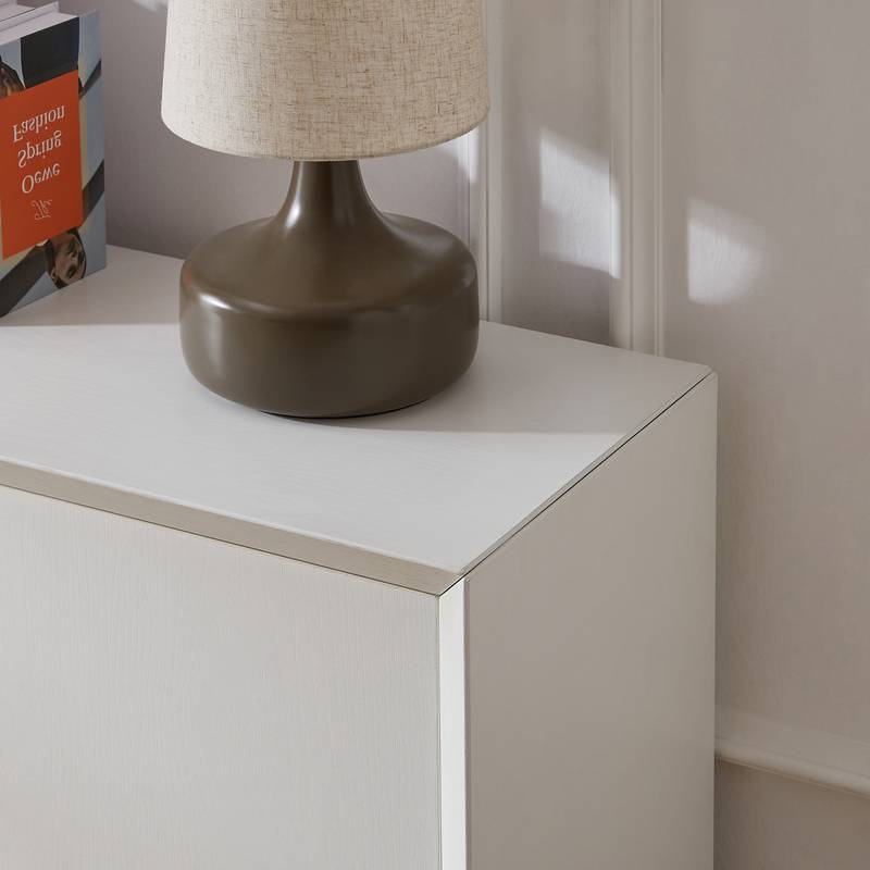 - Introducing our stylish white cabinet, perfect for any room in your home. Designed with contemporary folded corners, this versatile piece seamlessly blends into your living room, dining area, kitchen, or entryway.