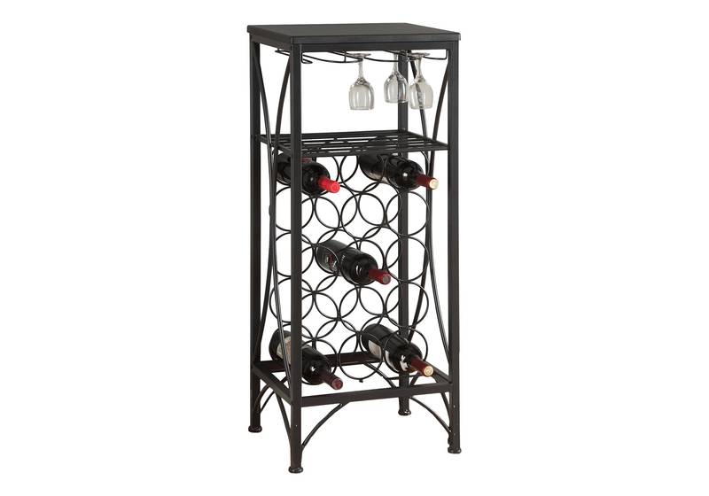 - Introducing a stylish and functional wine rack that enhances any space. Crafted from sturdy metal with a sleek black finish, this compact design measures 16.25 inches long, 12.50 inches wide, and 40.50 inches tall, making it ideal for dining rooms, living areas, or entertainment spaces.