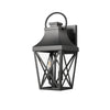 - Enhance your outdoor space with our stunning traditional wall sconce, featuring a sleek matte black finish and a clear tempered glass shade. Crafted from durable aluminum, this fixture combines style with strength, making it a great addition to your home.