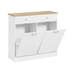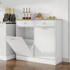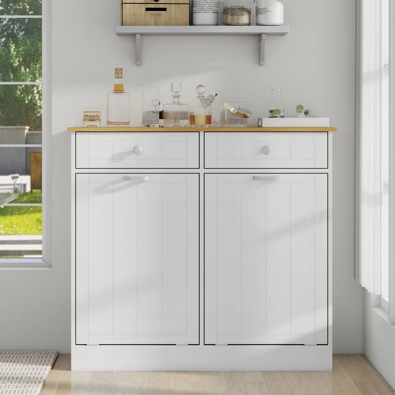 - Introducing the stylish and functional Dual Tilt Trash Cabinet in White and Light Oak! Designed to blend seamlessly with your home decor, this cabinet offers smart storage solutions while keeping your space tidy.