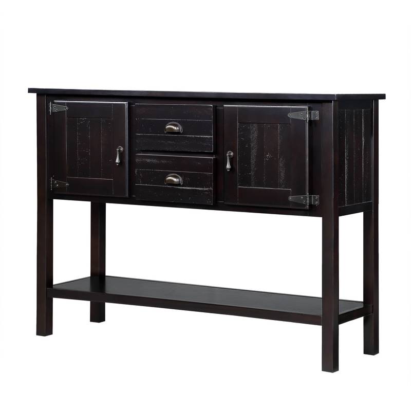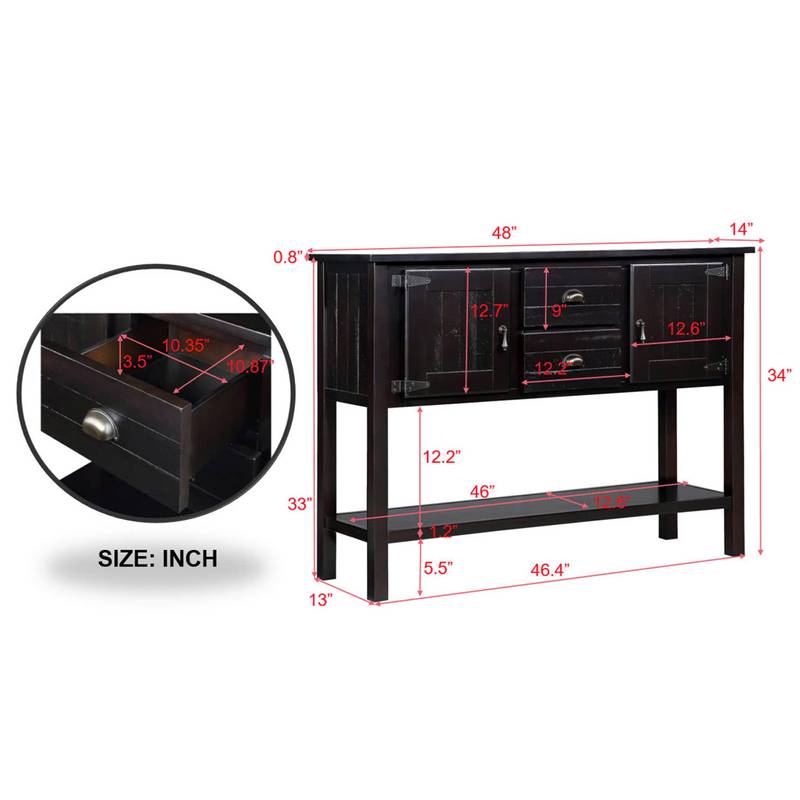 - Discover the perfect blend of elegance and functionality with our 48" Console Table, crafted from solid pine wood and finished with a stylish retro touch. This versatile piece fits seamlessly into any primary living space, serving as a console table, sideboard, or entry table.