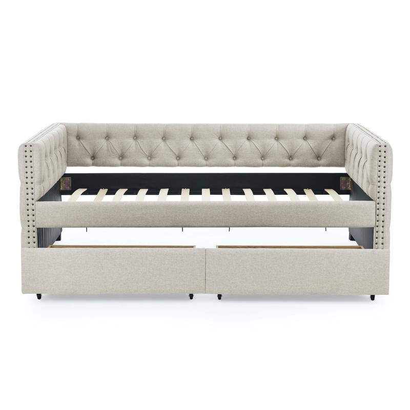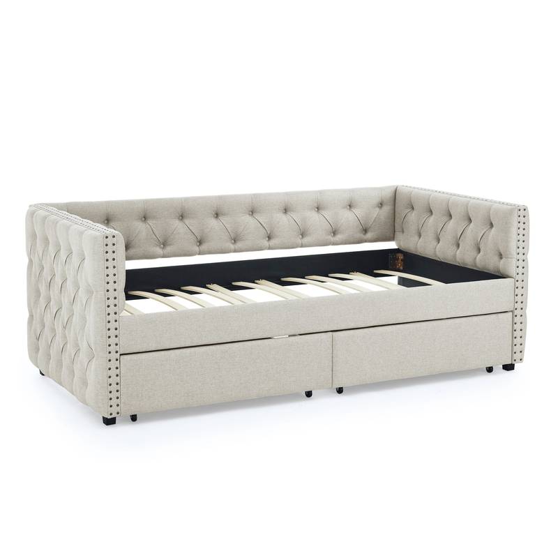| Product Name | Beige Button-Tufted Twin Daybed with Storage Drawers |