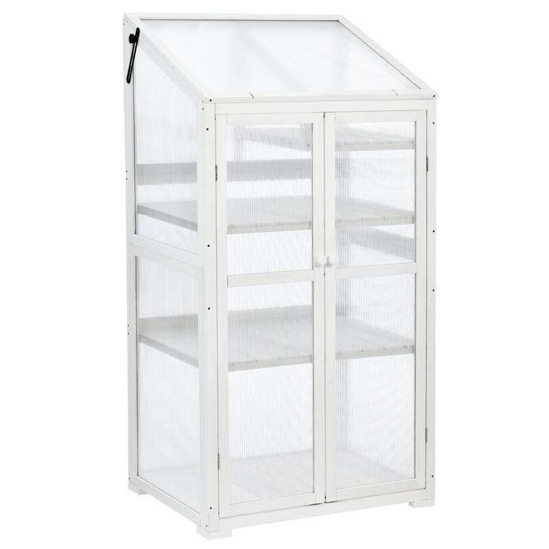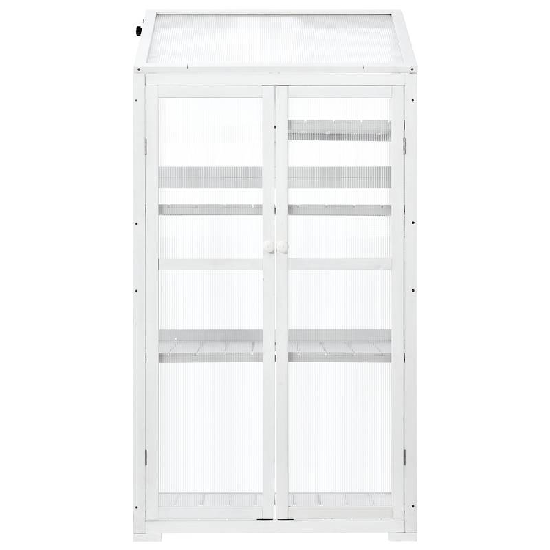 - Elevate your gardening game with our Mini Greenhouse Cold Frame, designed for garden enthusiasts with limited space. Crafted from sturdy fir wood and polycarbonate panels, it stands at 31.5x22.4x62 inches, providing ample room for your plants without cramping your balcony.