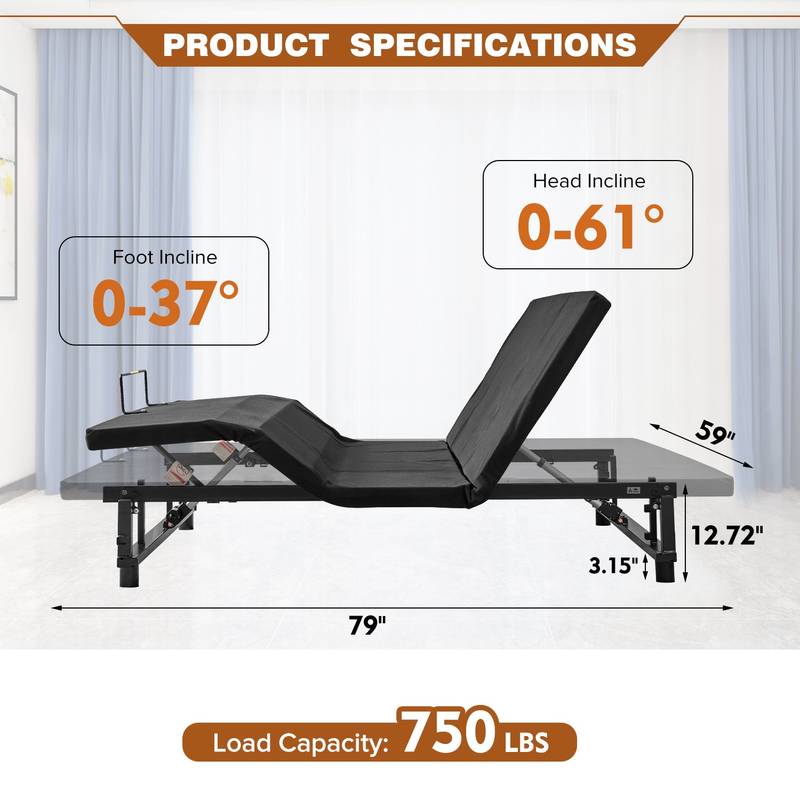 - Featuring customizable head and foot positions, you can find your ideal lounging or sleeping angle effortlessly. Adjust the head up to 61 degrees and the foot up to 37 degrees to suit your comfort needs.
