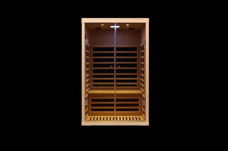 - Experience luxury and relaxation with our spacious indoor Far Infrared sauna. Designed for two, it features elegant hemlock double doors and a sleek glass design. With generous dimensions of 47.44 x 38.19 x 76.38 inches and a sturdy build that supports up to 300 kg, it's perfect for couples or friends seeking a rejuvenating retreat.