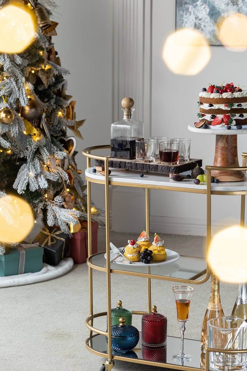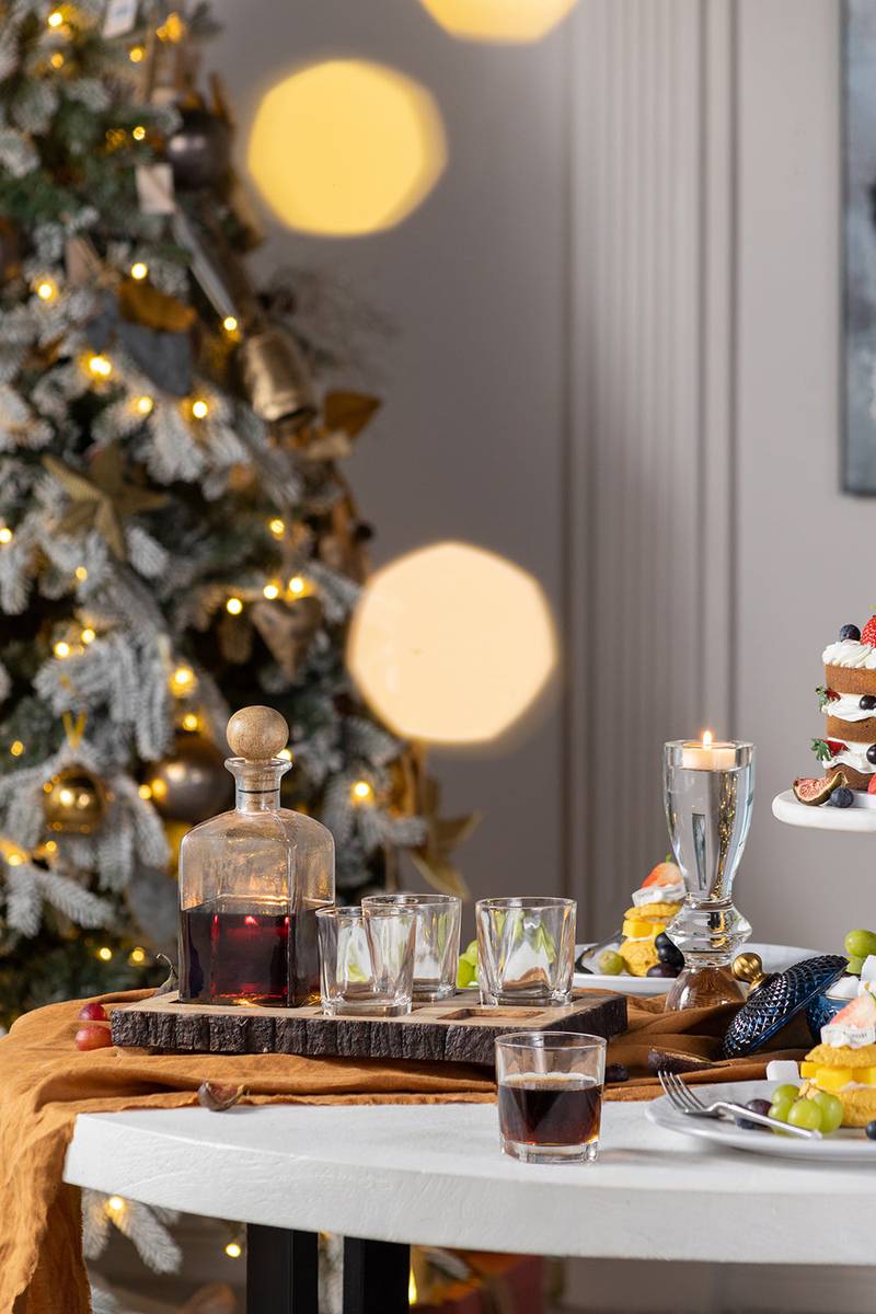 - Elevate your entertaining with the Alaine Bar Set, a stunning 6-piece collection crafted from 55% glass and 45% mango wood. With dimensions of 13x8.3x1.7 inches for the tray and a decanter measuring 3.5x3.5x8 inches, this set is not only functional but also adds a touch of rustic elegance to any setting. Weighing just 5.7 lbs, it's perfect for hosting parties, quiet nights in, or as a thoughtful gift for special occasions like weddings and anniversaries. Experience modern style and practical design with this beautiful bar set.