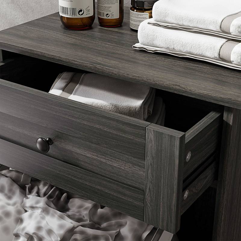 - - Space-Saving Design: With a tilting door cabinet and drawer, it provides ample storage while maintaining a sleek profile.