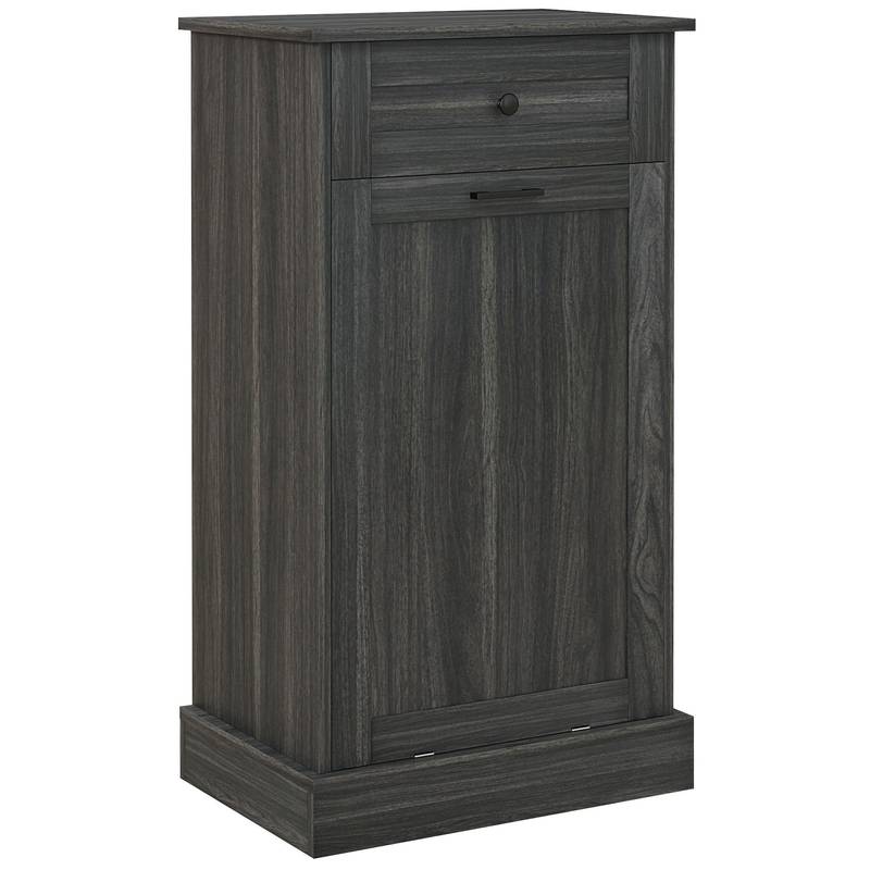 - Introducing our versatile kitchen trash cabinet, designed to elevate your space while keeping it tidy. Made from sturdy 15mm particle board with an oak top, this cabinet is built to last and can support appliances like microwaves and coffee machines.