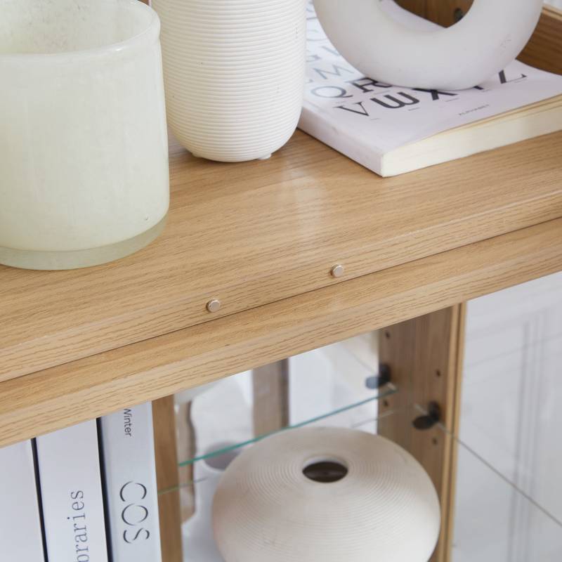 - Elevate your space with this stunning light oak cabinet, expertly crafted from MDF and glass.