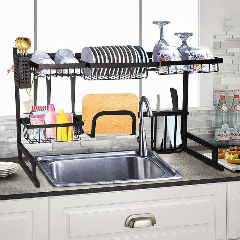 - Meet the ultimate stainless steel dish drying rack, designed to keep your kitchen organized and efficient. With a sleek black finish, this heavy-duty rack measures 35"x12.2"x20.4" and can hold up to 60 lbs, perfect for all your cooking essentials.