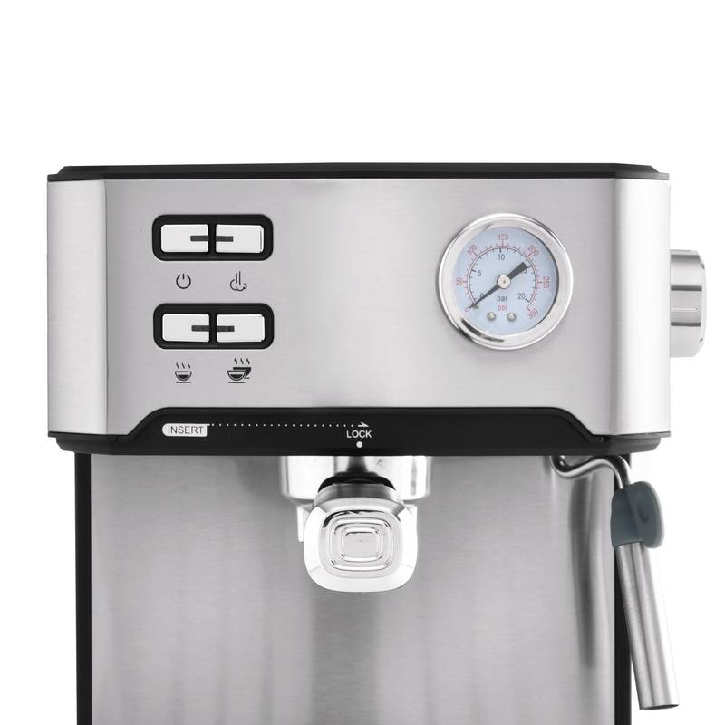 - Elevate your coffee experience with our sleek, stainless steel espresso machine. Brew your favorite drinks like espresso, cappuccino, or latte with ease using its impressive 20-bar pressure system. The visual pressure display keeps you informed while you switch between single and double shots for that perfect brew.