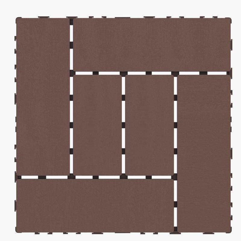 - Transform your space effortlessly with our versatile interlock tiles, made from durable polypropylene in a stylish red and brown color combination. At 12 x 12 inches and only 0.75 inches thick, these tiles are perfect for any solid surface indoors or outdoors, from patios to gardens.