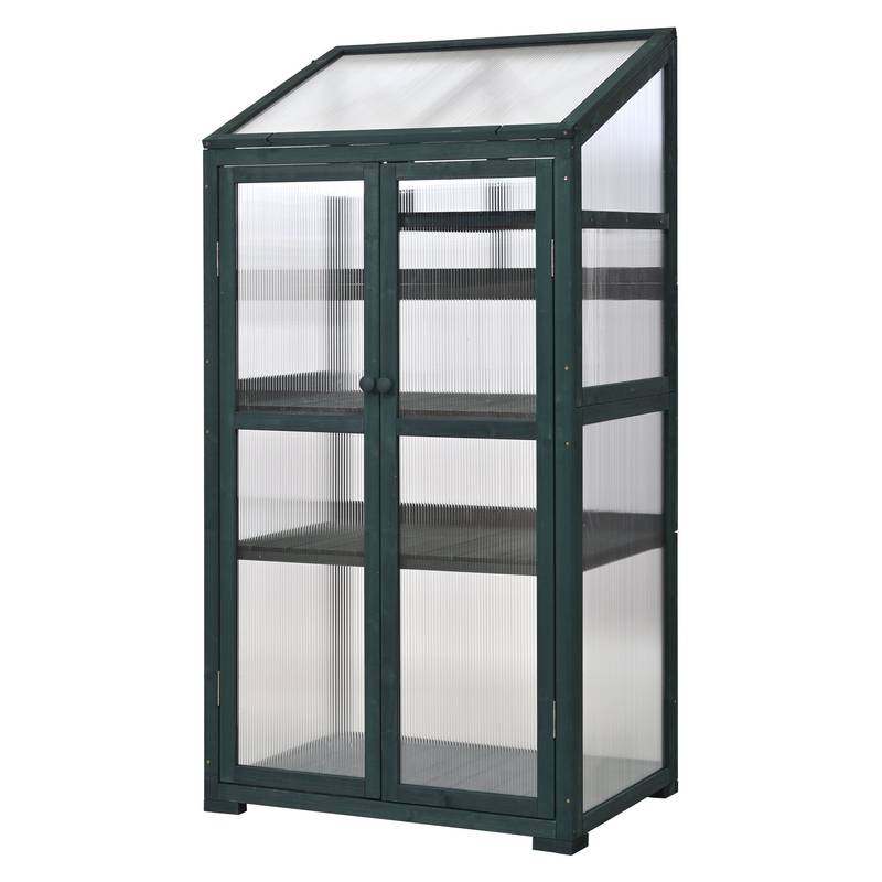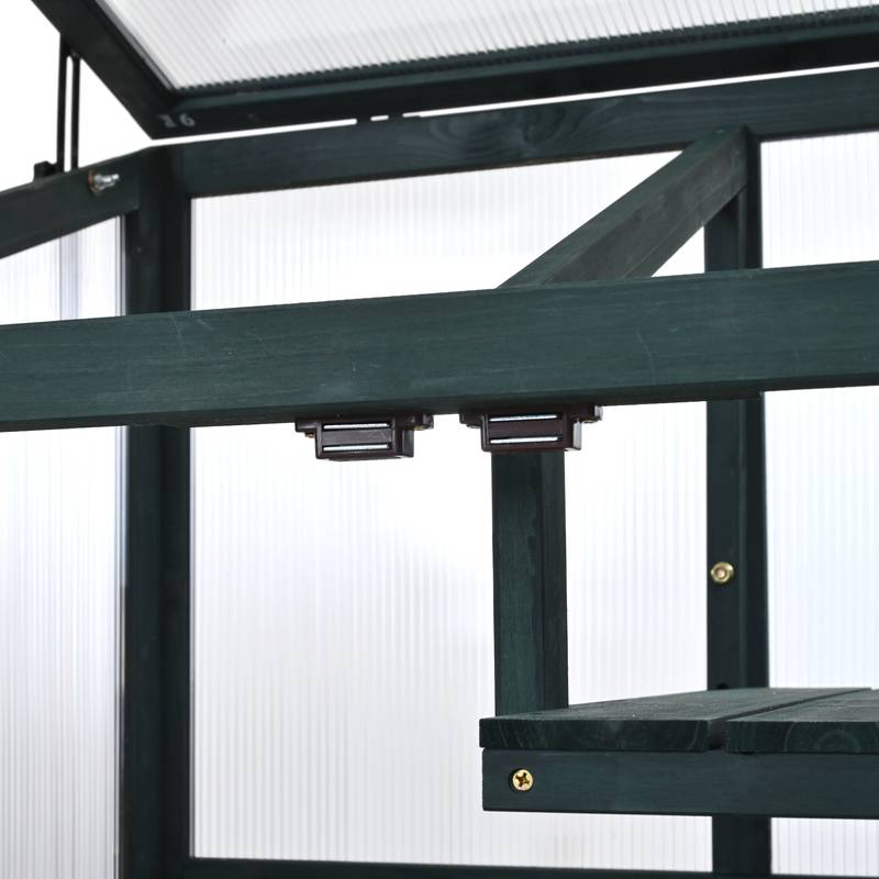 - Transform your balcony into a green oasis with our spacious Balcony Wood Greenhouse. Made from solid fir wood and durable polycarbonate panels, this stylish and casual greenhouse measures 31.5x22.4x62 inches, providing ample room for your plants without overwhelming your space.