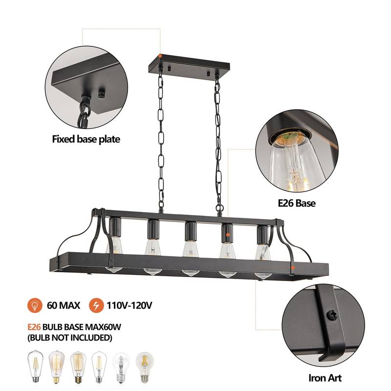 - - Custom lighting: With 5 E26 bulb sockets, you can choose the lighting that suits your mood, using incandescent or LED bulbs for a warm atmosphere.