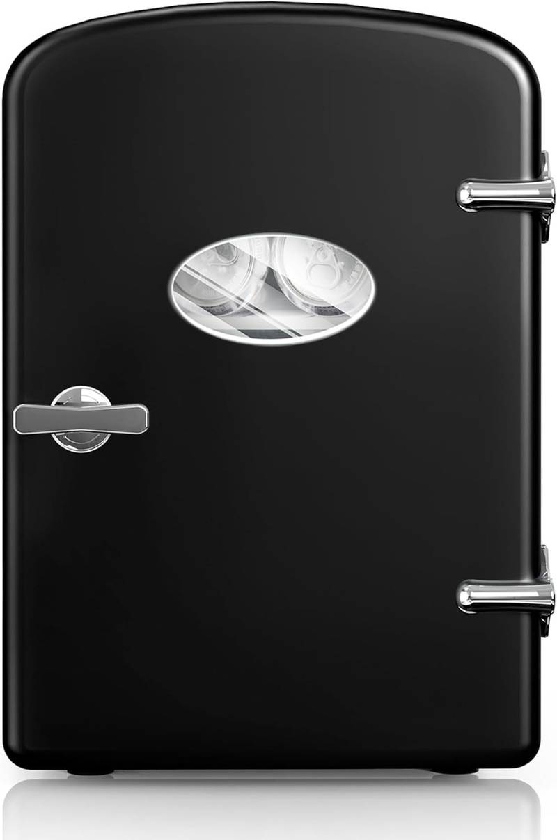 - Its compact design boasts a 6-liter capacity, comfortably fitting up to nine 330ml cans, making it an ideal addition to your office desk or bookshelf corner. Plus, go green with our 100% Freon-free technology; this fridge operates quietly and efficiently without harmful substances.