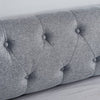 - Crafted from durable linen and a solid plywood and MDF frame, this mid-century-inspired piece features an elegant button tufted back and chic wavy arms, bringing sophistication to any room. Its reinforced construction supports up to 300lbs, ensuring long-lasting use without wobbling.