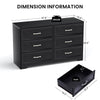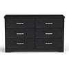- Upgrade your storage solutions with this sleek black chest of drawers, perfect for any room. Its spacious design features six drawers, allowing you to neatly organize everything from clothes to cosmetics. Crafted from high-quality particle board and MDF, this durable piece boasts a waterproof surface for easy cleaning.