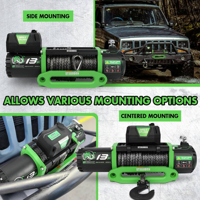 - One of its standout features is the next-generation wireless remote control, allowing you to operate from over 98 ft away or from the comfort of your driver seat with the long wired remote. Plus, the detachable control box offers flexible installation options to suit your vehicle setup. Whether for cars, trucks, boats, or trailers, the STEGODON winch is engineered for versatility and reliability. Get ready to tackle any hauling task with ease!