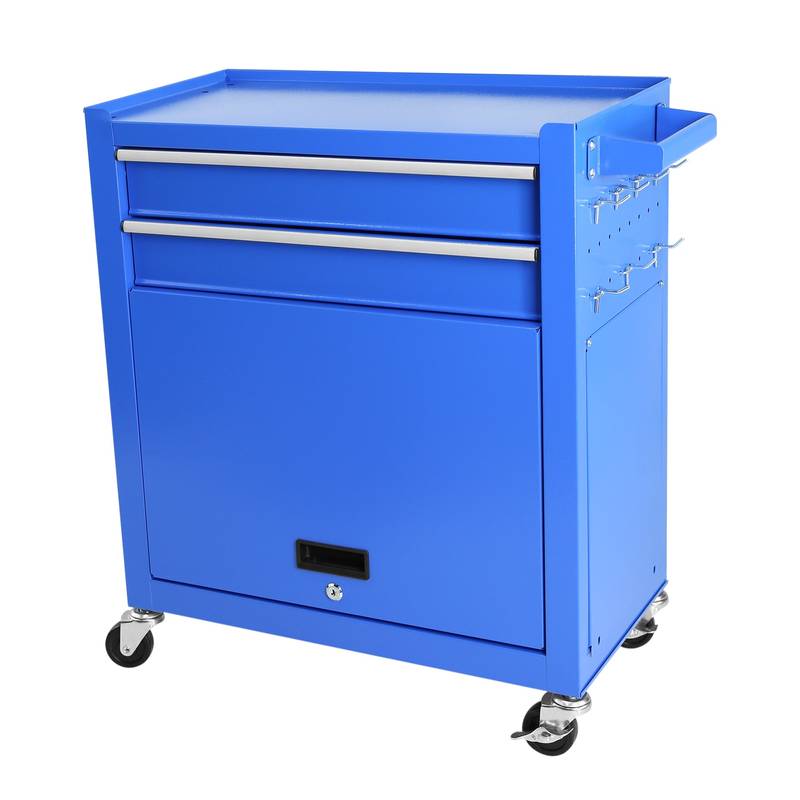 - Introducing our premium Steel Rolling Tool Chest in vibrant blue. With a spacious design, this tool chest features 8 thoughtfully organized drawers—2 large, 3 medium, and 3 small—plus a convenient top layer and bottom cabinet, accommodating all your tools with ease. The addition of 8 hooks and 7 storage boxes ensures everything has its place.