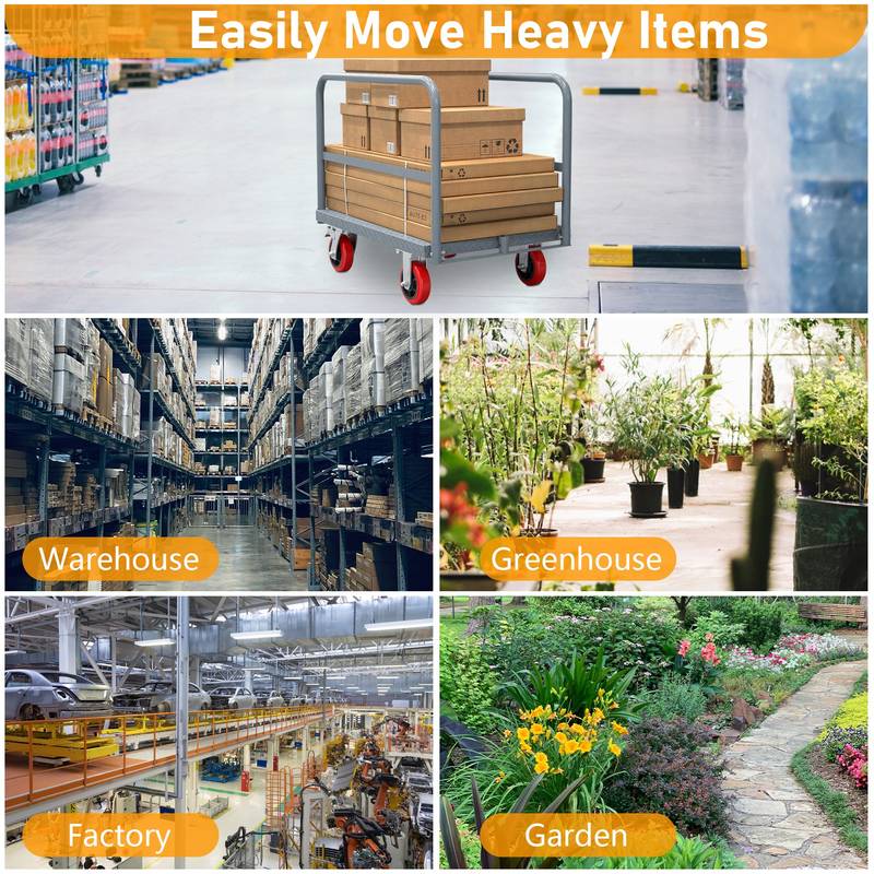 | Product Name | Sturdy Steel Flatbed Cart with Swivel Casters and Handrails |