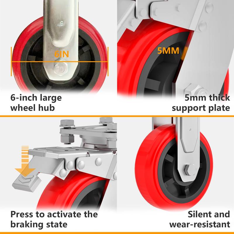 - - Smooth Mobility: Equipped with 6" casters and two 360-degree swivel wheels for effortless maneuvering.