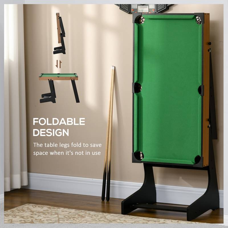 - Crafted from durable P2 MDF, this lightweight yet sturdy table measures 38.30” L x 20.80” W x 25.50” H, making it ideal for game rooms, living rooms, or apartments. Enjoy the thrill of billiards without the bulk of a full-sized table. When you're done playing, simply collapse it and tuck it away.