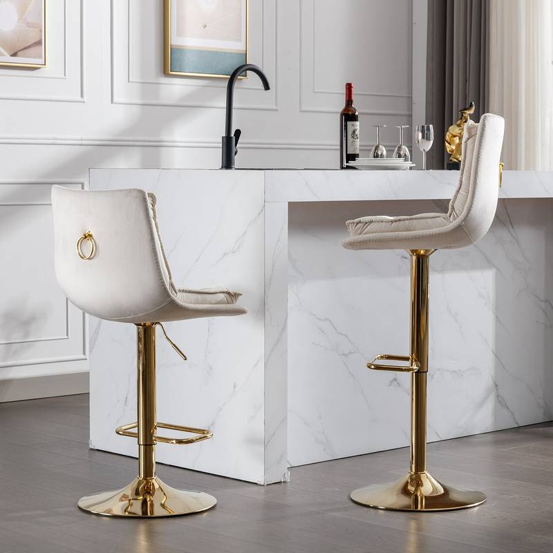 Velvet Swivel Bar Stools with Chrome Shine