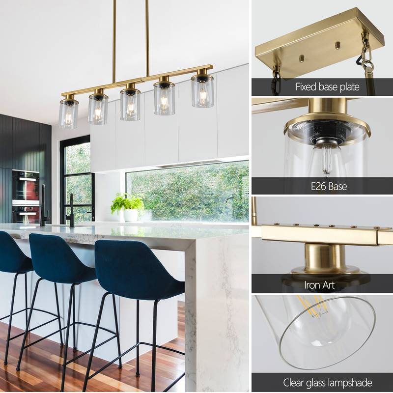 - Transform your space with our stunning golden pendant lamp. Crafted from high-quality glass and iron, this lamp blends modern and industrial styles seamlessly. Its transparent lampshade highlights the elegant golden frame, making it a perfect addition to any contemporary home.