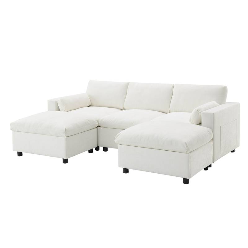 - Elevate your living space with this stylish and functional sofa designed for comfort and convenience. Upholstered in soft chenille, it features two removable ottomans for versatile seating or lounging options, ideal for entertaining guests. The sofa offers ample storage with bags on each side, keeping your essentials like remotes and magazines within reach.