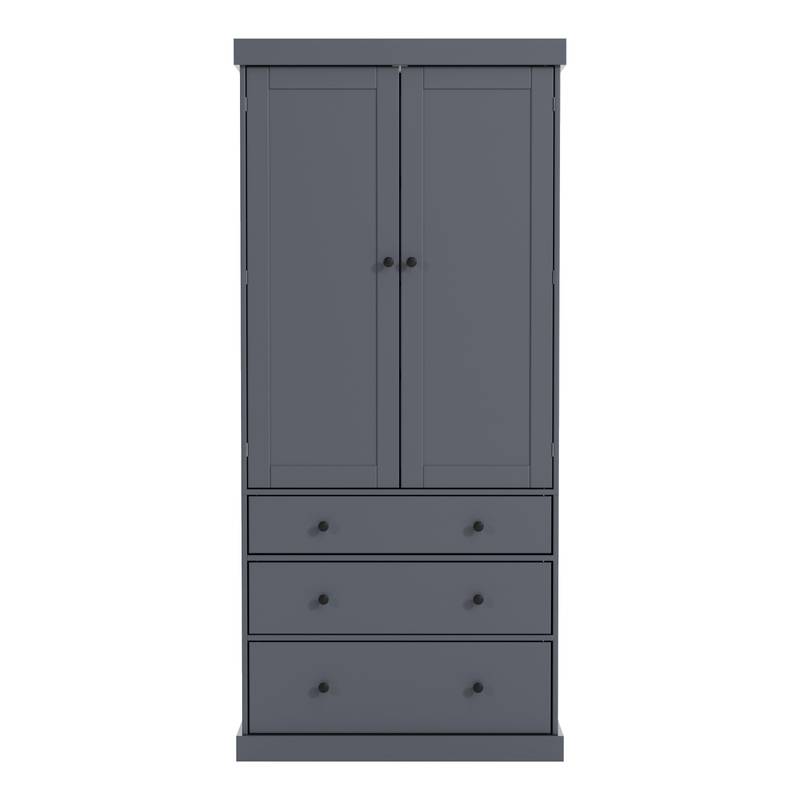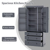 - Introducing our stylish Kitchen Pantry, designed to maximize your kitchen storage while adding a farmhouse touch. Made from durable painted MDF, this pantry stands 77 inches tall and 35 inches wide, offering plenty of space with 3 adjustable shelves, 8 handy door shelves, and 3 spacious slide-out drawers.