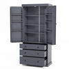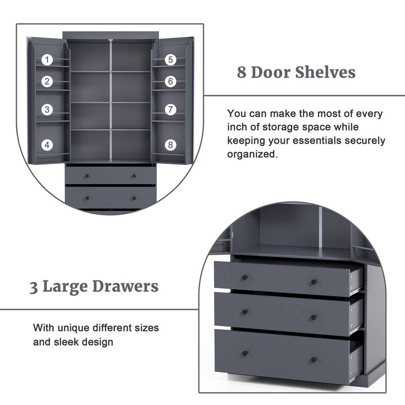 - Overall dimensions are 35x17.7x77 inches, with sturdy weight capacities: each shelf holds up to 110 lbs, door shelves can support 33 lbs, and the drawers handle 44 lbs.
