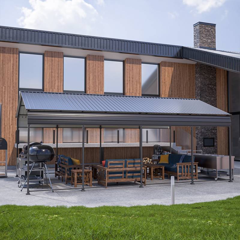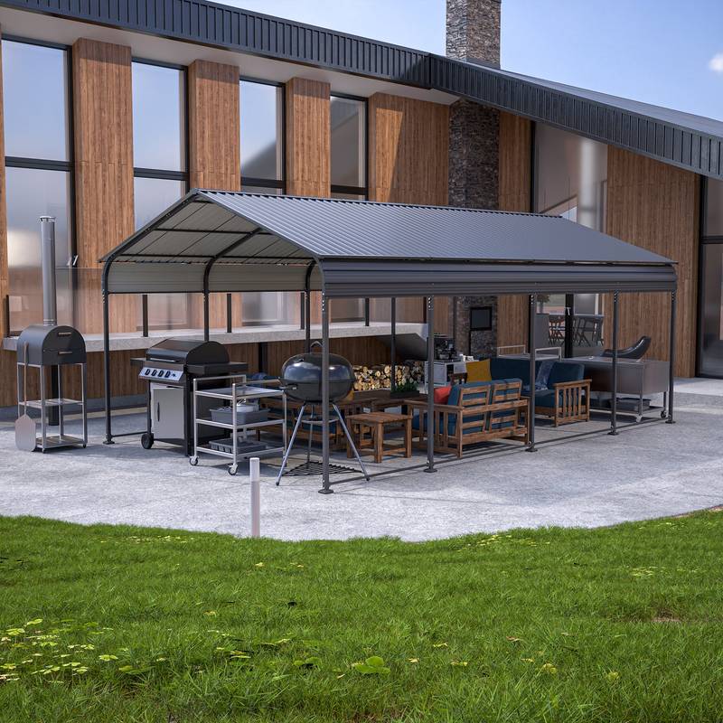 - Introducing our Heavy Duty Outdoor Carport, designed for durability and versatility. With an anthracite metal finish and robust construction, this 13'x20' carport features a galvanized steel roof and a sturdy steel pipe frame, ensuring it withstands the toughest weather conditions.